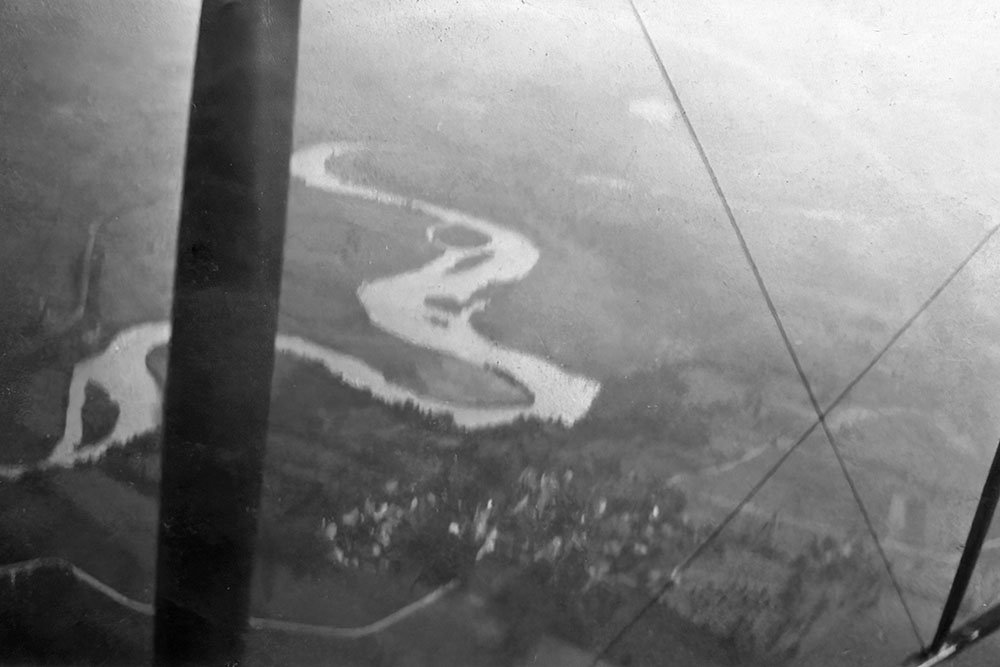 Probablement une des premières photos aériennes de Cartigny réalisée en 1919.
